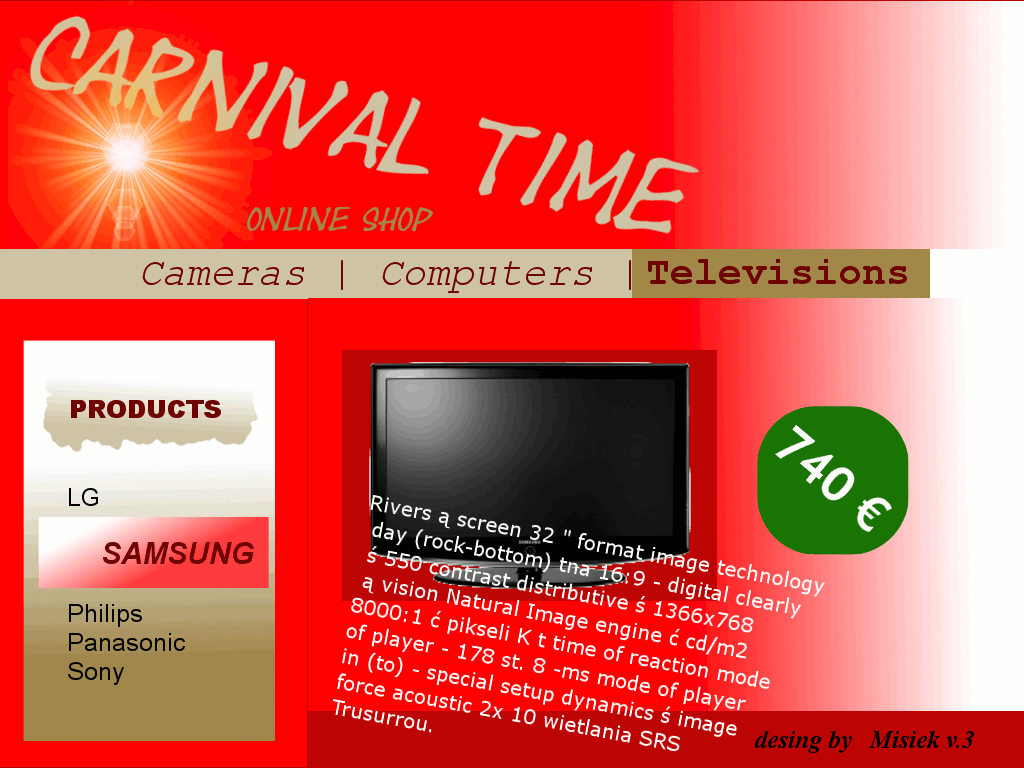 Catchmarx: 9 [3 pkt] Karnawalowy i przyjemny dla oka layout; nie jest tak sterylnie elegancki jak ten ozziussa, ale wlasnie w Karnawale chodzi o to aby byl przepych i kolorowo Uśmiech z wystrzalem zabawa Uśmiech