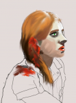 Co do trzeciej pracy - portretu popracuj jeszcze trochę nad malowaniem, dobieraniem kolorków i tłem.. zdecydowanie bardziej malarskie tło by tu lepiej pasowało. Włosom brak naturalności którą możesz otrzymać używając najcieńszego pędzla i wielu kresek.