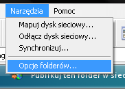 3. Potem klikamy w menu na górze Narzędzia->Opcje folderów