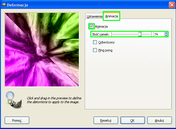 Lime Point 2.Z menu wybieramy Filtry --> Zniekształcenia --> Deformowanie... .