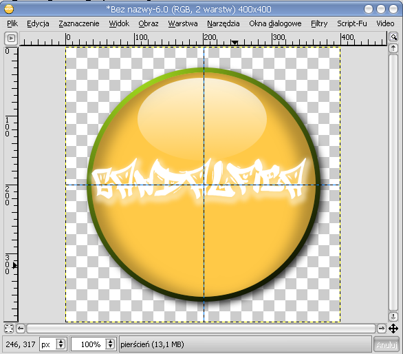 Gotowe! Jeśli z tej kulki chcemy mieć avatar, to po prostu przed napisaniem skalujemy wszystkie warstwy i piszemy.