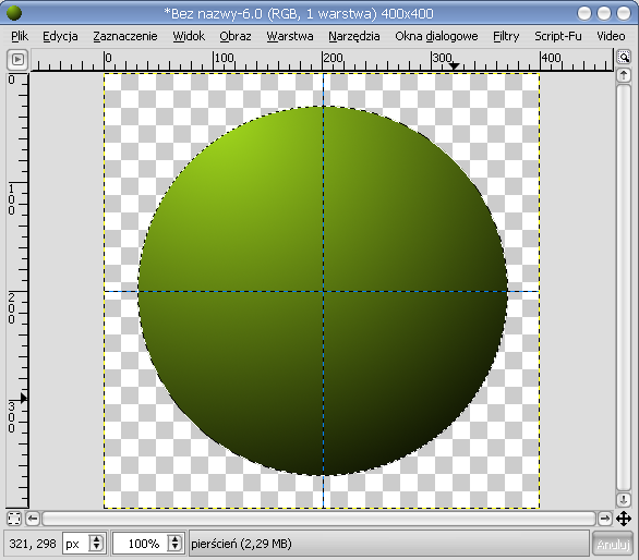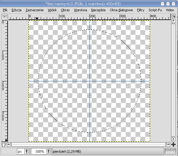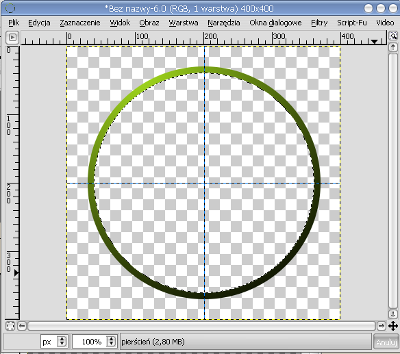Lime Point 1. Zaczynamy od stworzenia nowego, przezroczystego obrazka o wymiarach 400x400 px. Nazwę Tło zmieniamy na pierścień. Ustawiamy poziomą i pionową prowadnicę na 200.