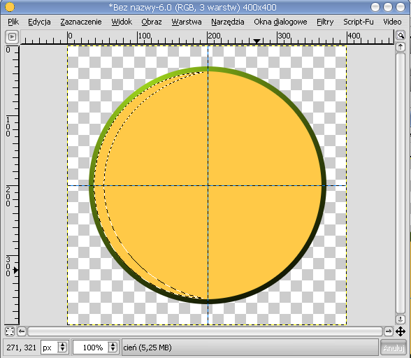 Lime Point 8. W okienku Warstwy klikamy prawym przyciskiem na warstwę koło a potem na Kanał alfa na zaznaczenie. Teraz znowu "odejmujemy" zaznaczenie, ale, tym razem cień ma być po prawej stronie. Efekt: