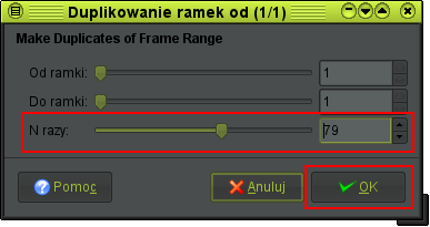 Lime Point 9.   W oknie dialogowym Duplikowanie ramek (Duplicate Frames) ustaw suwak N razy (N times) na 79 co da Ci w sumie 80 klatek animacji i kliknij w przycisk Ok.