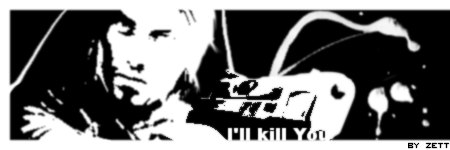 To sie nazywa B&W dopiero Chichot. Jest ok, ale ja bym zblurowal twarz tego ziomka i tyl zeby uzyskac wiecej glebi i wyodrebnic pistolet jako focal. No i przydaloby sie to zeby zmiejszyc wyostrzenie na twarzy (Albo AA jakis). Ramka tez jakas fikusna, he he Uśmiech. Napis jest ok. Tyle odemnie.