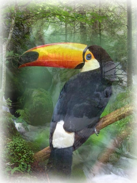 Oto moja praca (tylko chyba coś spierniczyłem, bo tak jakoś nierówno się przenika) - oko mojego psa i jakiś las: