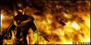 Faktycznie najlepsza... w końcu kolory jakoś ze sobą współgrają. Napis słaby... do wymiany pod każdym względem. Render jak na mój gust jest o wiele za mały. Zostawiłeś za dużo wolnego miejsca po prawej. Spróbuj też wtapiać jakoś postacie.
