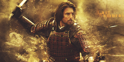 O ostatnim samuraju. Napis pasuje, dobrze wkomponowałeś c4d w tej lewej ręce. Bez ramki też ujdzie. Całość estetyczna, mimo tych wielu "odbryzgów".