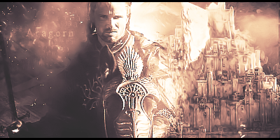 Aragorn - tu imho gorzej, nie podoba mi się ani lewa strona ani prawa (wygląda jakby się wtopił w Minas Tirith no i trochę trudno go umiejscowić w przestrzeni skoro miasto z dosyć wysoka Język)