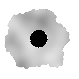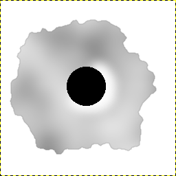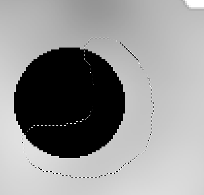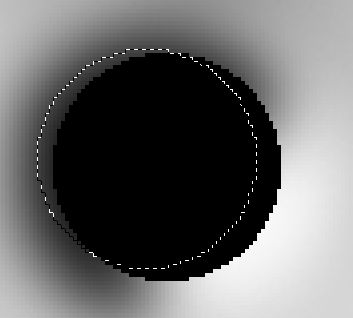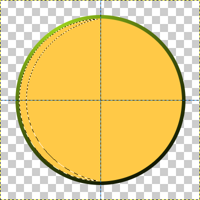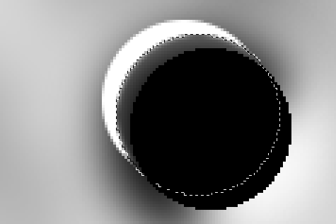 Lime Point 11. Tworzymy nową warstwę(Warstwa -> Nowa warstwa). Na warstwie z czarnym, okrągłym zaznaczeniem stosujemy kanał alfa na zaznaczenie. Przechodzimy na warstwę, którą przed chwilą stworzyliśmy i przesuwamy ją przy pomocy narzędzia przesuwanie Przesuwanie[M] o 5 px w prawo i 5 px w góre (aby to zrobić, używamy strzałek).