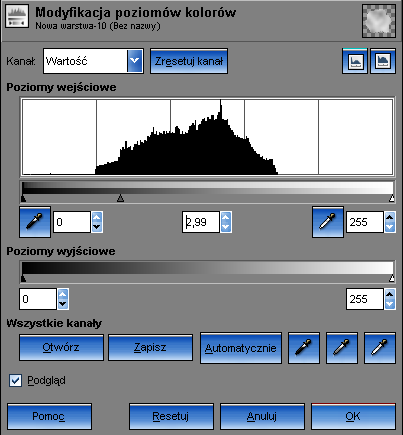 Lime Point 6. Przechodzimy do Kolory -> Poziomy i ustawiamy wszystko tak, jak na obrazku poniżej.
