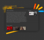 I przy okazji stary layout był robiony na zlecenie tak po znajomości  wrzucony dawno ale nie był oceniany  Ten mi się bardzo podoba. Taki sympatyczny, schludny i elegancki. Ale brakuję mi tu jakiegoś loga w topie, jakiegoś kształtu czy czegoś innego, bo sam tekst trochę zanudza. (7/10) edit: A w ostatniej pracy nie podoba mi się ten żółty pędzel. edit2: w padnij do mojej fabryki logotypów ;] (link w podpisie)