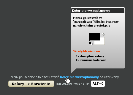Po prostu dostawał by parametr "barwienie" i odczytywał z bazy danych opis, ew. obrazek i skróty klawiszowe. Całość obrabiałby w linka prowadzącego do wiki gimpa.