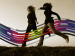 Lime Point 12.. Jak wspomniałem u mnie smuga przechodzi za drugą panią, więc teraz czas to pokazać. Na waszych zdjęciach smuga nie musi być w jakimś miejscu zakryta, ale ja myślę, że to uwydatni jej "przestrzenność". Ścieżkami zaznaczyłem dokładnie nogi drugiej pani i kawałek piąstki. Bierzemy Zaznaczenie ze ścieżki [Shift+V]i na warstwie ze smugą wycinamy. Oczywiście możemy zostawić kilka "lini" smugi, aby sprawiało wrażenie, że pani biegnie dosłownie "w smudze". W miejscach gdzie zostały piksele możemy śmiało zatuszować je narzędziem Rozsmarowywanie Rozmazywanie [ S ].