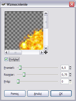 Lime Point 4. Wybieramy Filtry -> Uwydatnianie -> Wzmocnienie, ustawienia takie jak poniżej.