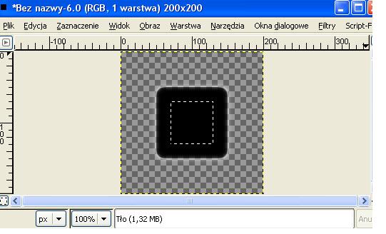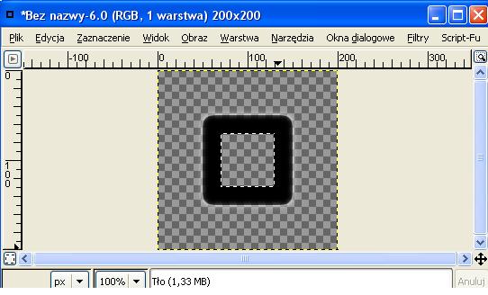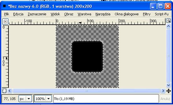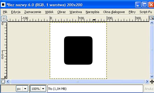 Lime Point 1. Tworzymy nowy obraz o wymiarach 200x200px z przezroczystym tłem i wypełniamy białym kolorem #ffffff. Następnie stosując zaznaczanie prostokątne zaznaczamy kwadrat o wymiarach 100x100px i wypełniamy go kolorem czarnym #000000. Teraz musimy zaokrąglić rogi, możemy to zrobić przy pomocy tutoriala @Cakpera