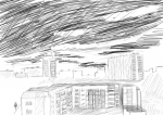 HasiuK, całkiem przyjemny szkic, chociaż niektóre linie trochę Ci się pochyliły Mrugnięcie Perspektywa chyba ok? Tyle tylko że ten przechylony budynek po prawej nieco przeszkadza. Niebo eee... dziwne, ale spoko Duży uśmiech Bloki na pierwszym planie mi się podobają.