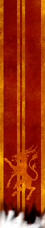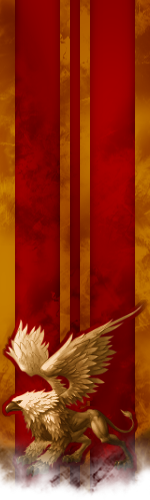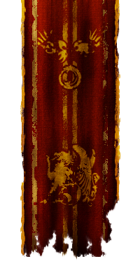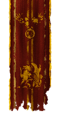 Mmm, złota farba ciekawie odchodzi od materiału  Teraz strzępy są lepsze, tylko daruj sobie te dwie trójkątne dziury i będzie git. I jeśli możesz, to proporzec zrób dłuuuższy, przynajmniej na tyle, aby gryfowi nóg nie ucinać  Taki długi jak ten pokazany dwie wersje wcześniej. Pisz tutoriala.