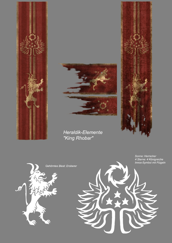 1 - Ja zrobiłem coś takiego:   2 - Nie wiem czy ktoś już o tym pisał ale wydano oficjalny fankit z grafikami do "Gothic" gdzie są takie proporczyki. W swojej pracy nie wykorzystałem tych materiałów. Oto proporce z tego packa: