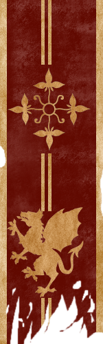 Tak, niepotrzebny. Poza tym za dużo robisz dziur na samym proporczyku, moim zdaniem wystarczą przycięcia na bokach i u dołu. Niepotrzebnie też go tym razem tak mocno przybrudziłeś. Złote elementy są za ciemne, mało widać. Wcześniej było lepiej. Gdy będziesz robił postrzępienia na dole, to przyjrzyj się w jakiejś innej pracy, jak to wygląda, np. tej z pierwszego posta w tym temacie. U Ciebie one wyglądają jak zęby dinozaura  Są takie zaokrąglone i kręcą się na boki. Spróbuj je bardziej poszarpać i skieruj je ku dołowi.