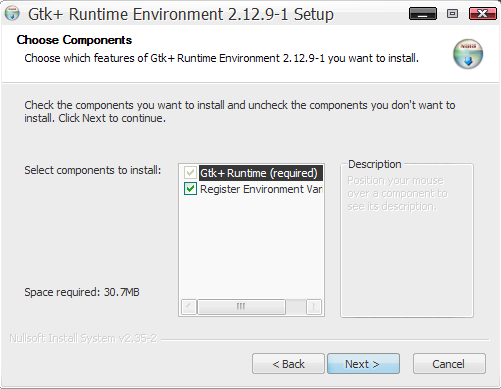 Następnie, podobnie jak z Pythonem, wybieramy czy innym też zainstalujemy GTK+.