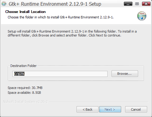 Dalej wybieramy gdzie chcemy zainstalować GTK+. Standardowa lokalizacja wydaje się w porządku. Przynajmniej dla mnie.