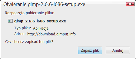 Ukaże nam się okienko pobrania pliku, którego wygląd zależy od używanej przeglądarki. Poniżej zaprezentowano okienko poboru plików przeglądarki Mozilla Firefox.