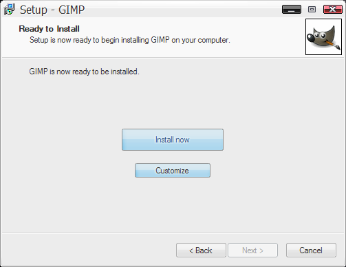 Wybieramy "Customize". Na kolejnym ekranie wybieramy ścieżkę, gdzie ma się zainstalować GIMP.