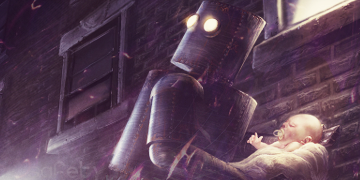 Chodzilo mi o to, ze na dole jest jakies zrodlo swiatla, nie wiadomo z czego.. wiadomo tylko, ze nie slonce.. Ja se to tak wyobrazilem.. To swiatlo to zle ufo, a dobry robot chroni male dziecko.. Troche dziwne - wiem.. Ale tak mi sie skojarzylo, wiec po co niby patrzy w gore?