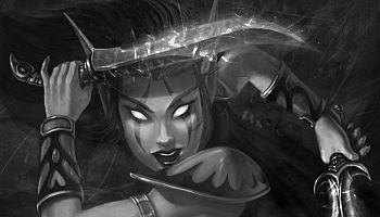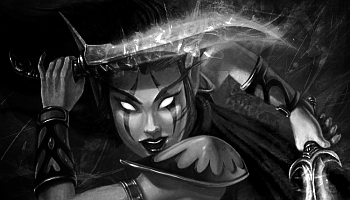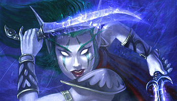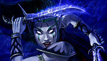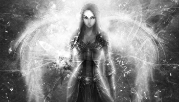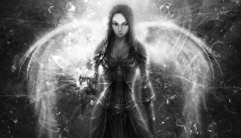 27. Najlepsza ze wszystkich wersji, ten niebieski mi jakos nie lezy, moglbys ciutke doslownie rozjasnic lewy gorny rog, wokol tego drugiego (dolnego) miecza mogles zrobic wieksze swiatlo. Reszta w sumie jest ok. Przydalby sie jakis napis, moze zamiast rozjasniania lewego gornego rogu dasz tam fajny jasny polyskujacy napis? Pomysl nad tym.
