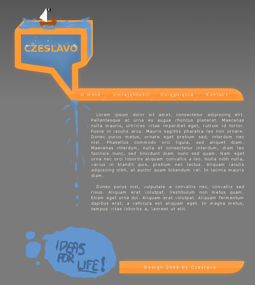 • pasek w nagłówku wygląda super, szkoda, że nie zrobiłeś tego samego lub czegoś podobnego w stopce,