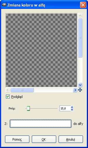 Moim zdaniem w Gimpie w opcji: "Zmień kolor w alfę" powinna być opcja Próg.