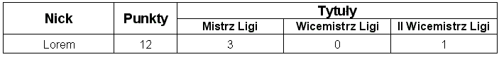 Po rozpoczęciu rozgrywek przygotuję tabelę najlepszych zawodników, myślę że TOP 5 wystarczy, chyba że uczestników będzie na prawdę wielu - wtedy TOP 10.