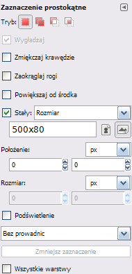 Lime Point 6. Narzędzie Zaznaczenie prostokątne Zaznaczenie prostokątne [R] ustaw tak, jak na screenie poniżej.