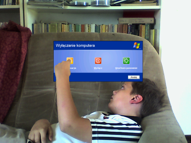 StachuGIMP: 0 - nie wiem co wspólnego z armagedonem ma wyłączanie / hibernowanie Windowsa, prędzej jego uruchamianie, ale i tak nie pasuje, szczególnie do poczciwego XP Język Dłoń dziwnie wycięta, pomysł marny
