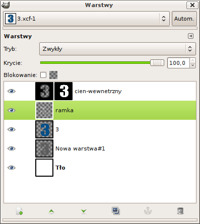 cien-wewnetrzny Kanał alfa na zaznaczenia na warstwie z cyfrą -> [ctrl+I] odwróć zaznaczenie -> na warstwie