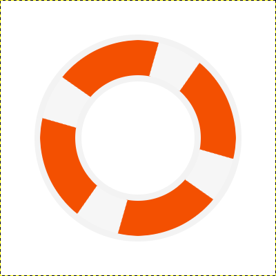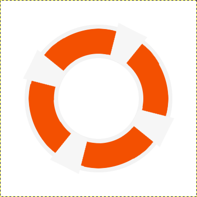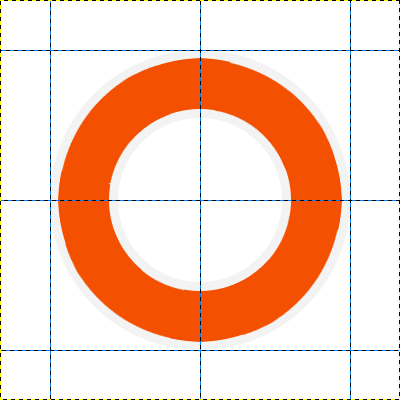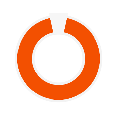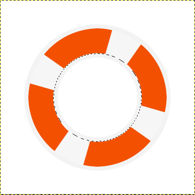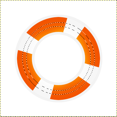 Teraz Przejdź do warstwy Koło i narysuj w nim  Zaznaczenie eliptyczne zaznaczenie eliptyczne (Wewnątrz dużego kwadratu który powstał z prowadnic) i wypełnij go kubełkiem Wypełnienie kubełkiem #f3f3f3. Następnie zmniejsz zaznaczenie o 65px (Zaznaczenie -> Zmniejsz) a z kolei usuń jego zawartość (Delete).Zmieniamy warstwę na Pomarańczowa Obręcz i klikamy prawym przyciskiem myszy na warstwę Koło i wybieramy Kanał alfa na zaznaczenie (na dole listy), następnie zmniejszamy Nasze zaznaczenie o 7 px, a zarazem wypełniamy go kubełkiem  Wypełnienie kubełkiem #f35001