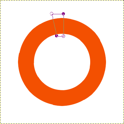 Teraz mamy już 4 łatki następnie łączymy wszystkie duplikaty w dół (Warstwa -> Połącz Warstwę) po prostu przechodzimy każdą kopie po kolei i łączymy w dół, w wyniku otrzymamy jedną warstwę Biała Obręcz, na której będą 4 łatki (Patrz Obrazek #5). Teraz kończąc zabawę z łatkami wystarczy obrócić je według własnego uznania ja to zrobiłem tak (Patrz obrazek #6), tą czynność wykonujemy tak Przechodzimy na warstwę Biała Obręcz i obracamy ją dowolnie (Warstwa -> Przekształcenie -> Dowolny Obrót) i ustawiamy według własnego uznania. Kiedy już obrócimy łatki pasowało by pozbyć się tych wystających części, więc klikamy prawym przyciskiem myszy na warstwę Pomarańczowa Obręcz i wybieramy Kanał Alfa na Zaznaczenie, następnie odwracamy zaznaczenie (Zaznaczenie -> Odwróć) i usuwamy jego zawartość (będąc dalej na warstwie biała Obręcz). I białe łatki gotowe