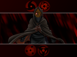 Ludzie ! Czy wy już bajek nie oglądacie?  toż to Tobi ! Prawdopodobnie Madara Uchicha (z naruto) a te znaki to są Sharingan`y i więcej ich nie ma Język