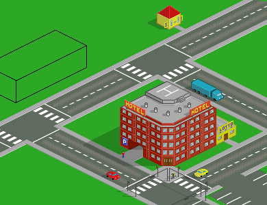 Troszkę poprawiłem tak jak mówiłaś (krawędzie, kolory) oraz dodałem coś swojego, a mianowicie TIRa, kiosk, lotnisko dla helikoptera, drogi oraz szkielet nowego budynku. W najbliższym czasie dorobię ludzi oraz pojazdy i dokończe nowy budynek. Prosze was o ocenę oraz pomysły do rozwinięcia.