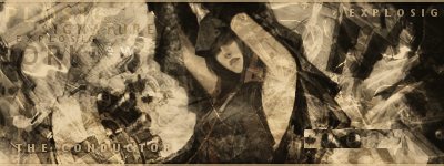 Następna sygnatura, tło to wielki bałagan c4d chaotycznie poustawiane całość nie tworzy żadnej kompozycji. Widać tylko twarz postaci reszta jest zamazana i niewidoczna. Brak dobrej głębi nie ma na czym skupić wzroku. Do napisu dobrałeś złą czcionkę. Kolory brzydkie, lepiej jak by były ciemniejsze.