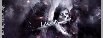 do napisu "death" wybrałeś strasznie brzydka czcionkę jak na sygnatury, postać mogła by być wyżej osadzona, napisy wraz z szarą ramką też niezbyt atrakcyjne i brzydkie C4 nad głową D;
