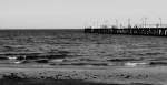 W dobrą stronę kombinujesz. A to już plus. Wodę od nieba dzielisz dobrze na 3 części. Fajnie jakby trzy równe części były, tj piasek, woda i niebo. Molo już wcina się do połowy. Albo jest tematem zdjęcia i wcina się na 2/3 kadru, albo tylko dodatkiem, tłem i zajmuje 1/3. Oczywiście rozpatrujemy pod kątem trójpodziału.