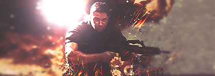 Kolory są słabe, szczególnie po prawej. Render w niektórych miejscach przeostrzony(karabin) a w niektórych zbyt rozmyty(np. twarz). Tło po lewej ok, po prawej brzydko. Napis jest w porządku. Teraz to światło. Byłoby dobre, jakby stykało się z głową, ta przerwa taka jest niepotrzebna. W tej pracy to rozmycie tła mi się kompletnie nie podoba. Głębia po prostu nie wyszła, brzydko ona wyglada. Mi się ten tag nie podoba, słaby jest imo.
