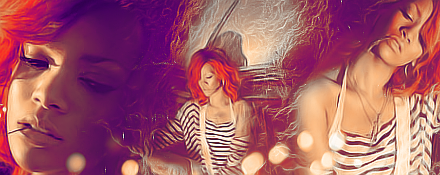 Do gustu przypadła mi ostatnia sygnaturka (Rihanna). Podobają mi się kolory a'la zachód słońca i pastelowa twarz z lewej. Dołożyłbym tylko na wszystkie ten efekt i wtopił jakiś ciekawy napis. Poza tym coś te refleksy mnie się średnio podobają, chyba ich za dużo. Zostawiłbym osobiście z 1, max 2 kropki. Mrugnięcie
