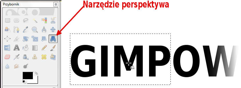 3. Wybierasz z przybornika narzędzie Perspektywa i klikasz na zaznaczony obszar: