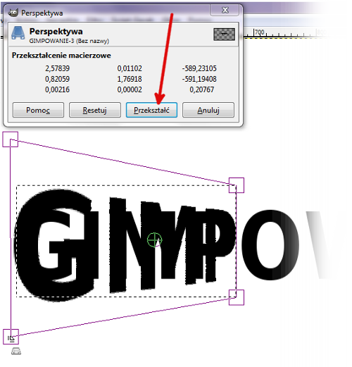 5. Analogicznie postępujesz z drugim narożnikiem i klikasz Przekształć: