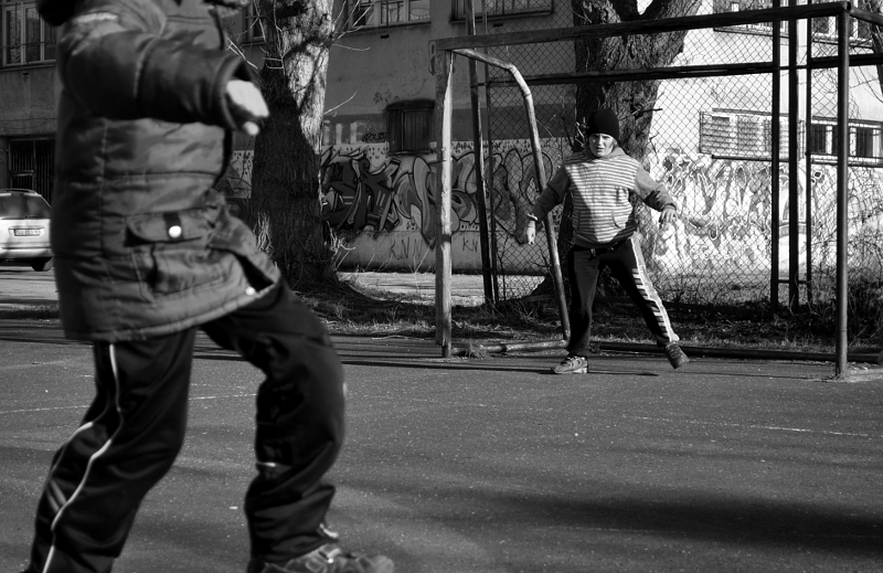 Szczerze - wybierz sobie jakis temat np powzysze podworkowe kopanie pilki i rob dluzszy czas. Wyczuj dzieciaki niech sie do Ciebie przyzwyczaja tak zeby przestaly zwracac na ciebie i aparat uwage.