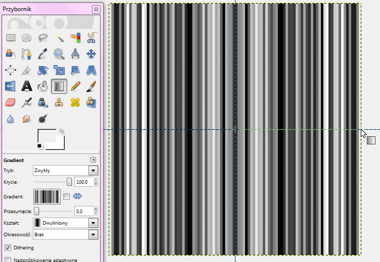 Lime Point 4.Przeciągamy gradient dokładnie od środka do krawędzi obrazu, wzdłuż poziomej prowadnicy (musi być idealnie prosto).