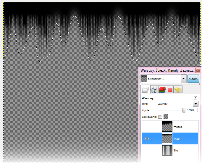 Lime Point 17. Przechodzimy na warstwę wiatr i włączamy jej widoczność. Odwracamy zaznaczenie (Zaznaczenie -> Odwróć)i klikamy delete. Wyłączamy zaznaczenie